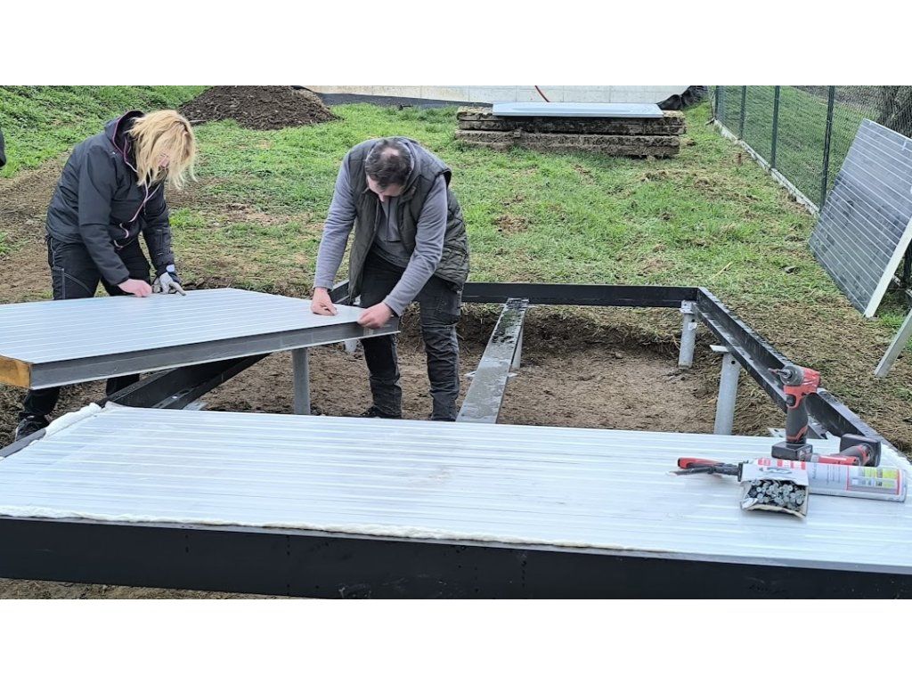 - Izolační PUR panely tloušťky dle výběru 60-100mm, základní barva RAL 9002 interiér/ RAL 7016 exteriér